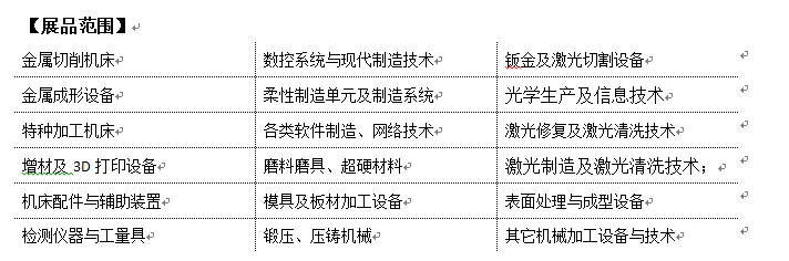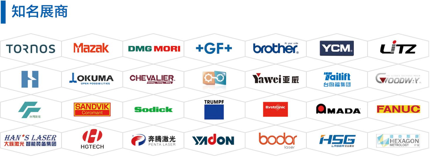 机床展区、激光展区、机器人展区、汽车装备展区、自动化展区、紧固件展区