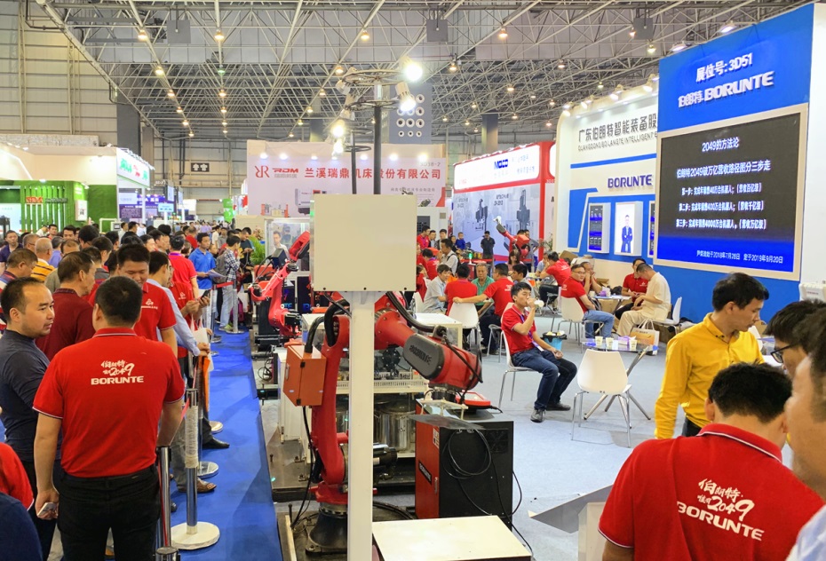 3号馆广东伯朗特机器人展厅排队参观火爆场面